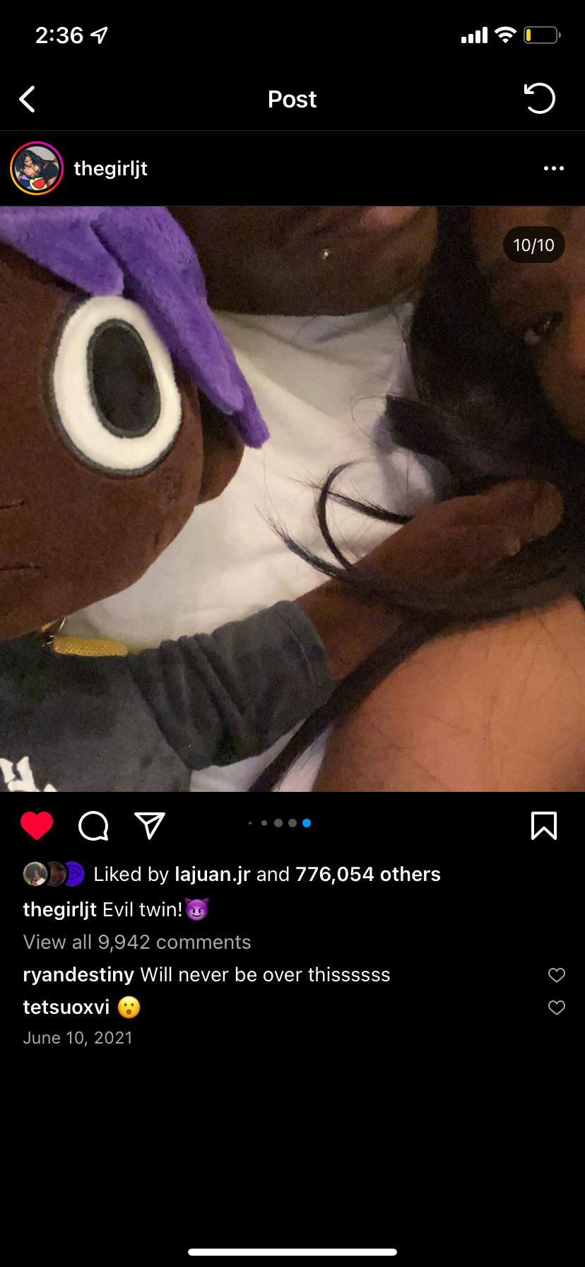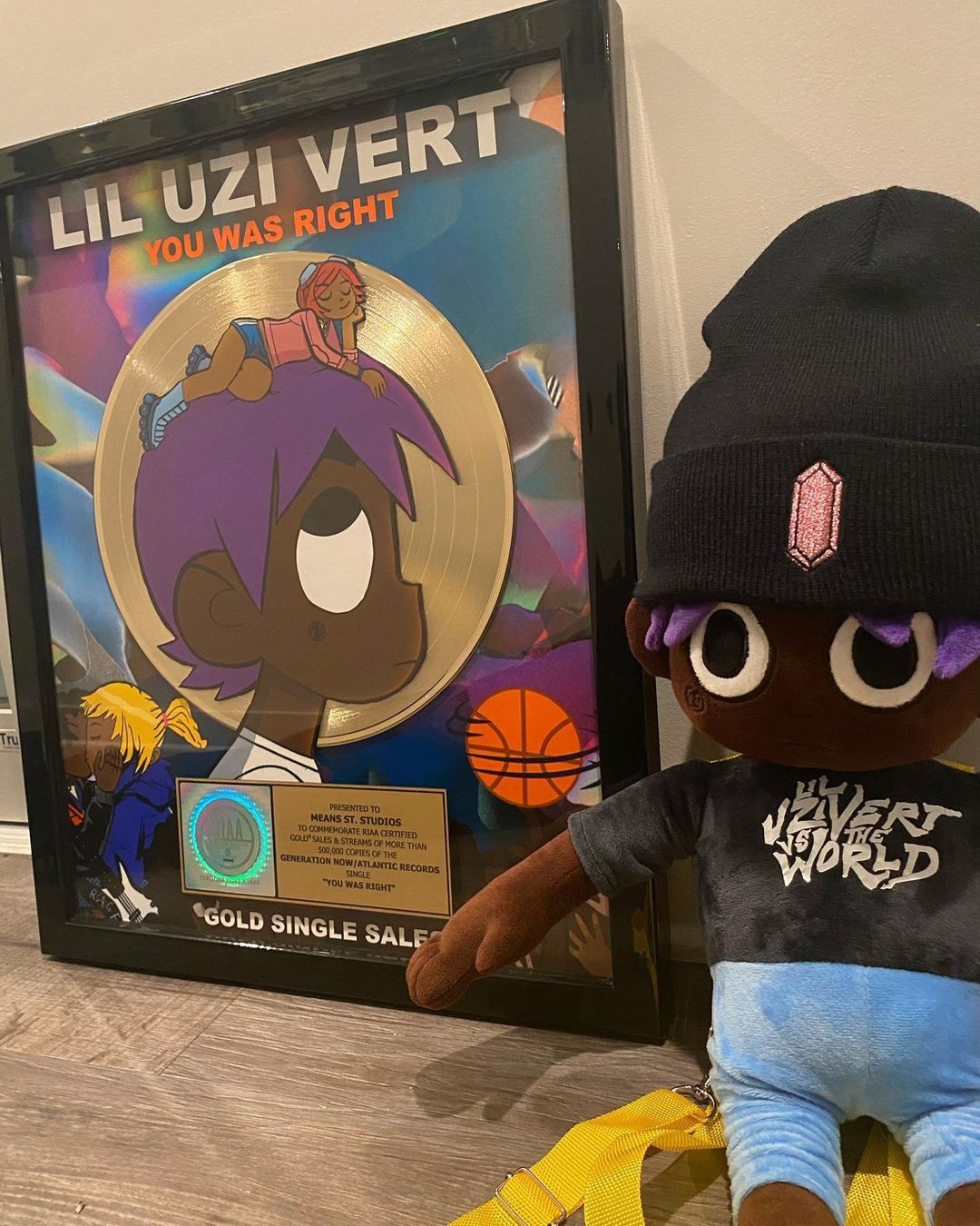 2021 / Lil Uzi Vert Detachable Backpack Plushie Next to "You Was Right" Gold Record